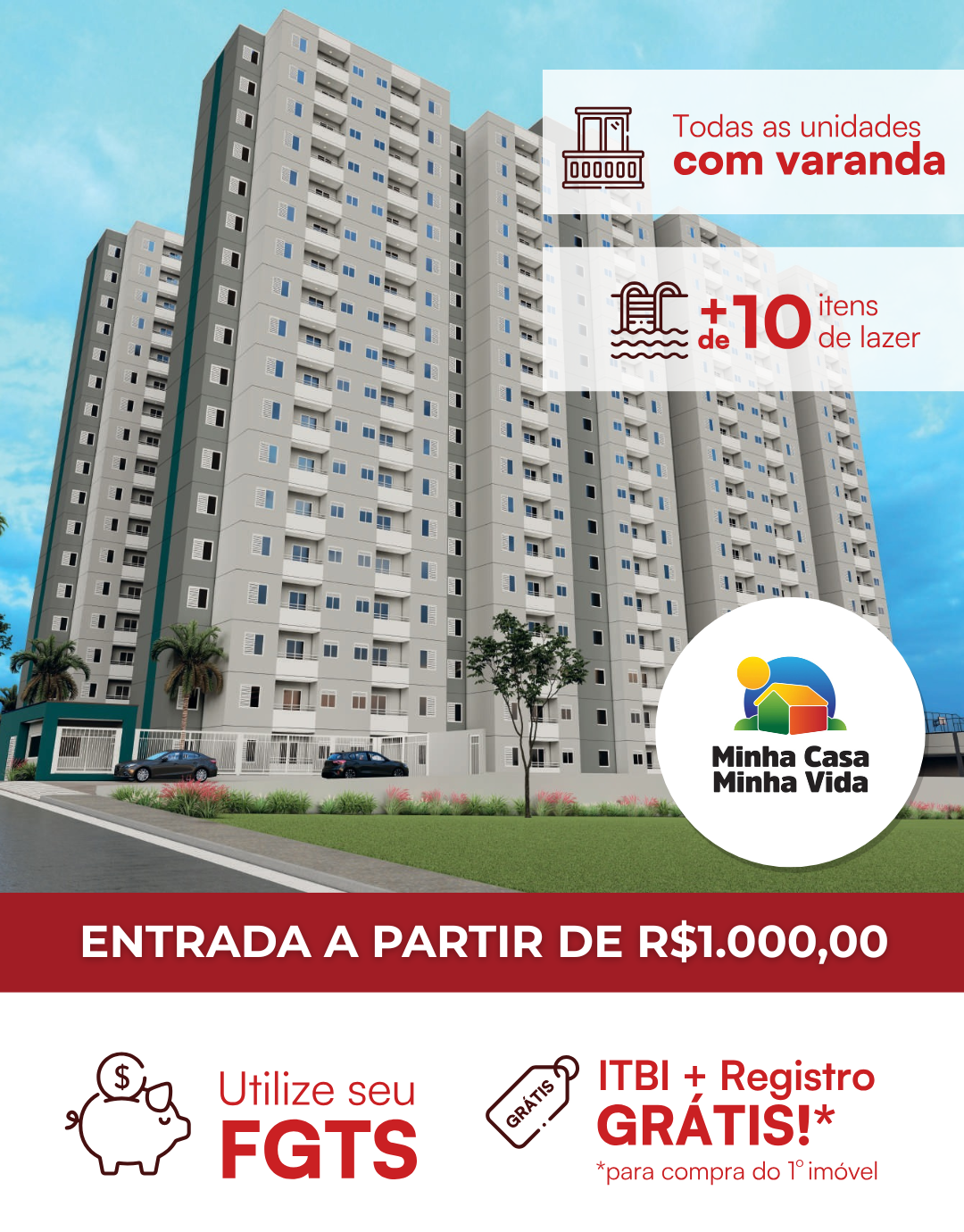 Entrada facilitada e todos os benefícios do Programa Minha Casa Minha Vida.